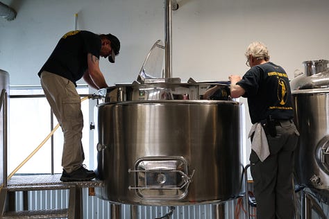 On Saturday, April 22, Ben Wilder and Mark Wiebe helped Smiling Toad brew the final batch of IP(a) Freely to help the Toad keep going until June. The brew day wasn’t the easiest, but the guys soldiered on and we’ll look forward to enjoying the fruits of their labor here in a week or two.